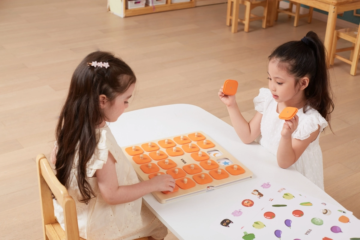Lielā Montessori Viga atmiņas spēle ir lieliski piemērota ģimenes kopīgām brīžiem un mācībām bērnudārzā. Bērni paceļ koka pārsegus ar rokturiem, iegaumē attēlu un meklē tā pāri – vienkāršs princips, kas lieliski stiprina loģisko domāšanu, vizuālo atmiņu un uzmanību.