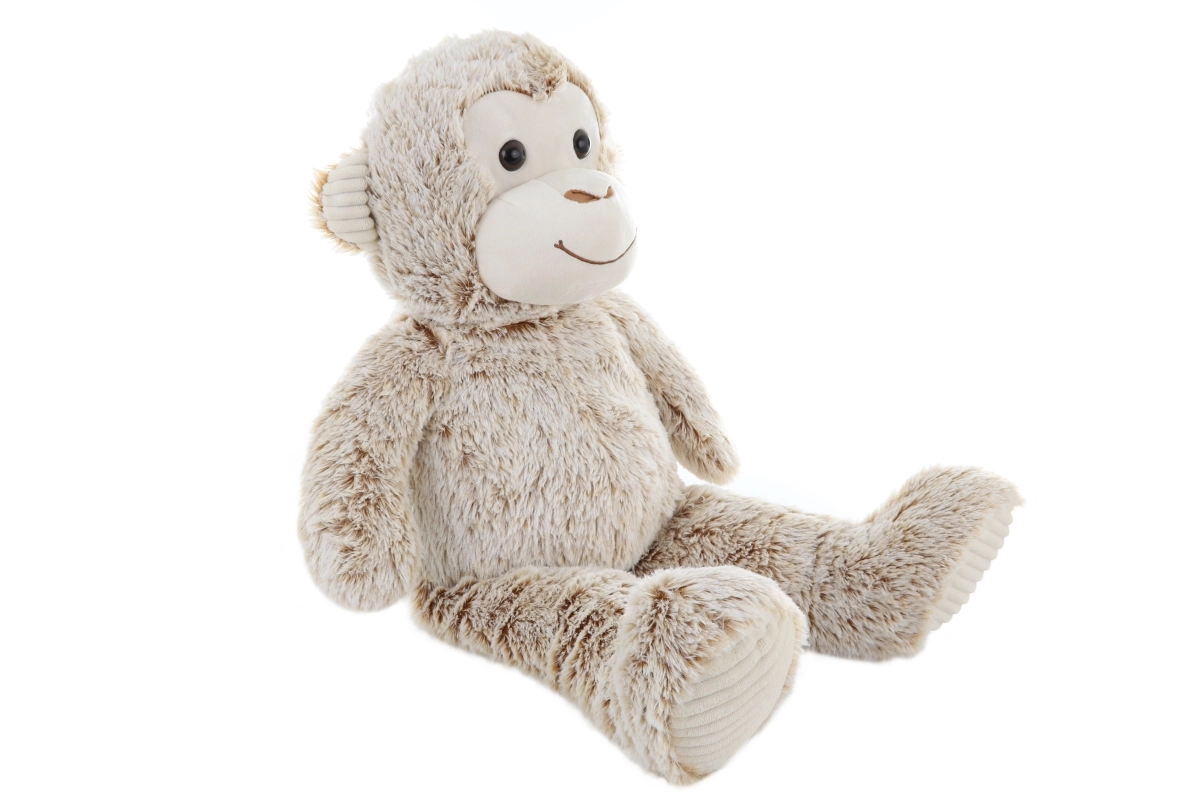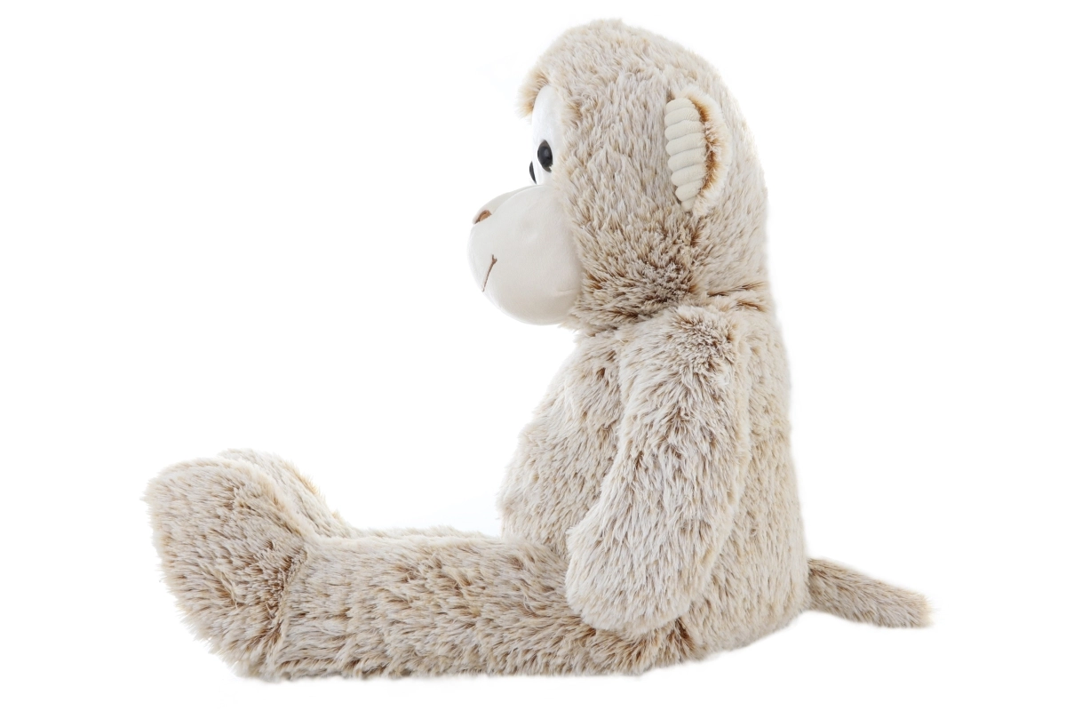 Šī lielā plīša pērtiķa mantiņa bēšā tonī kļūs par iemīļotu draugu gan gultiņā, gan ceļā. Tai ir maigi, pūkaini matiņi, smalki izšūtas sejas detaļas un patīkami manšetes tipa auduma elementi uz ķepiņām un austiņām. Pateicoties vieglajam pildījumam, to ir lieliski apskaut un ērti pārnēsāt arī mazākiem bērniem.