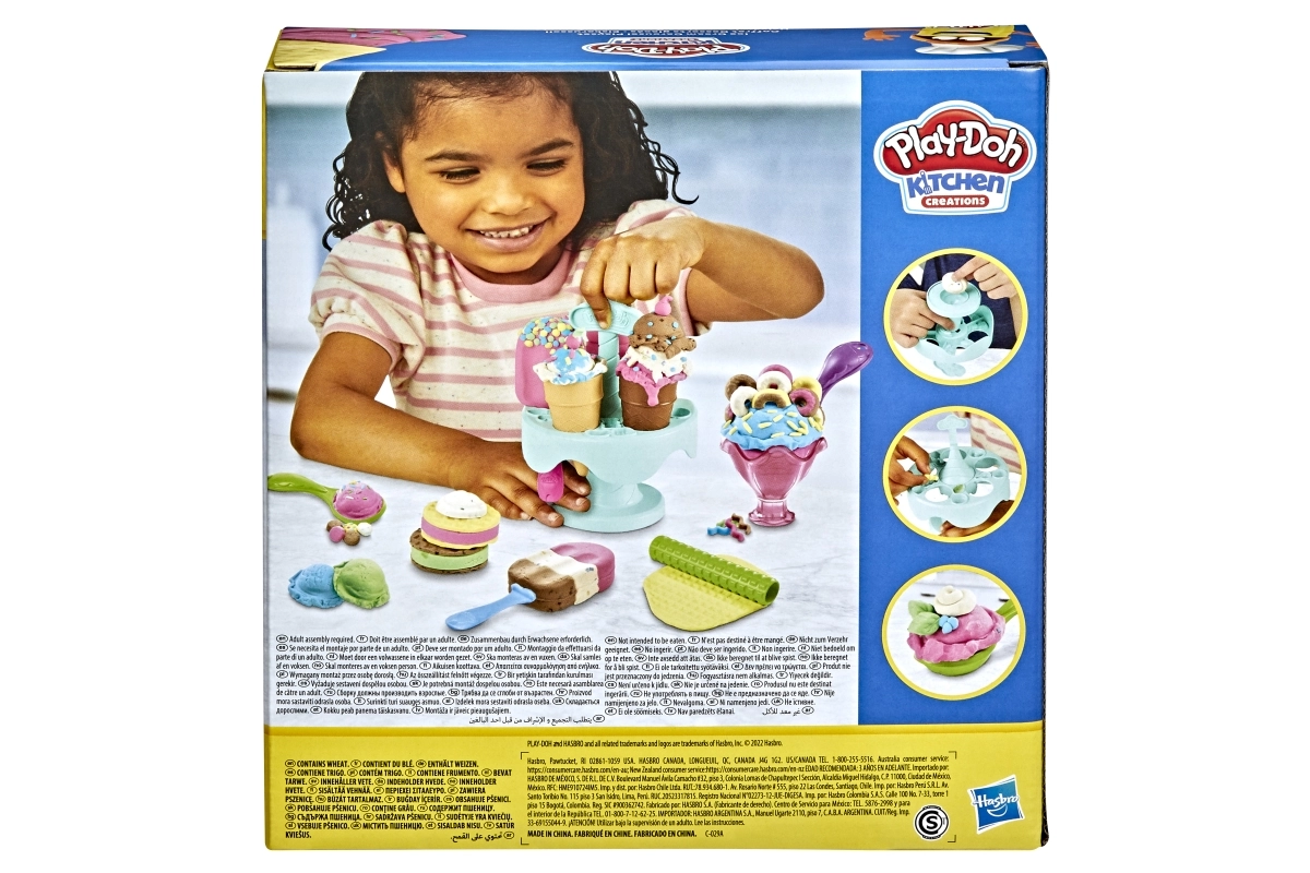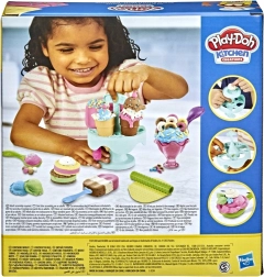 Ar šo Play-Doh saldējuma komplektu bērni var “pagatavot” saldējuma porcijas vafeļu glāzē vai podiņā, dekorēt tās un pasniegt turētājā. Viegli lietojams, nelīp un sniedz stundām ilgu radošu izklaidi.