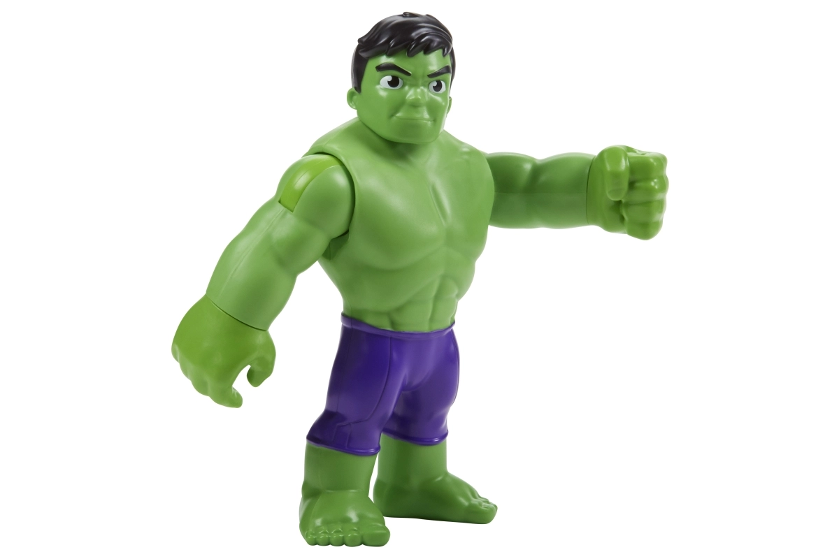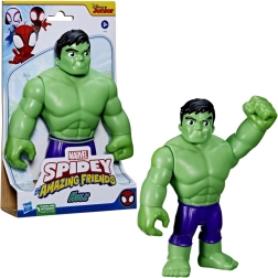 Spēcīgs sabiedrotais mazajiem supervaroņiem! Mega figūriņa Hulk 23 cm no sērijas Spidey un viņa pārsteidzošie draugi piedāvā bērniem no 3 gadu vecuma daudz darbības un izklaides. Tai ir kustināma galva un pleci, tā ir izgatavota no izturīgas plastmasas un lieliski piemērota Disney Junior ainu atkārtotai izspēlei un pašu stāstu izdomāšanai.