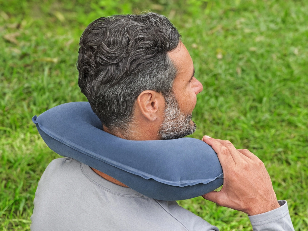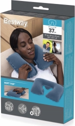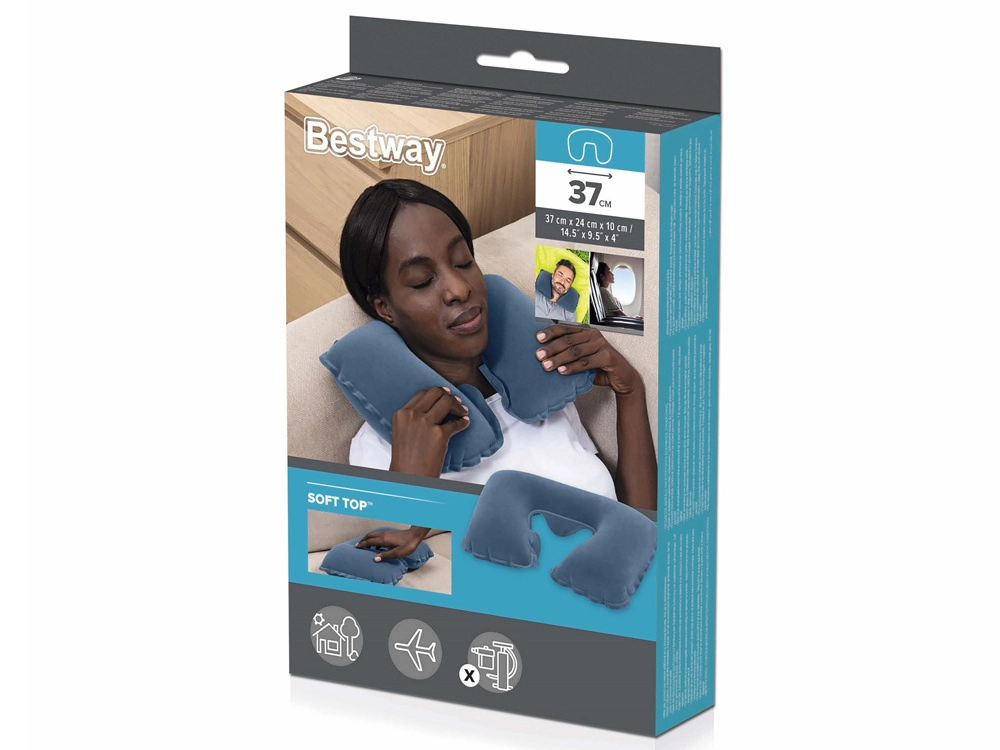 Uzpūšamajam spilvenam Bestway ir unikāla forma, kas sniedz komfortu un stabilu atbalstu kaklam un pleciem, padarot to par ideālu ceļabiedru.