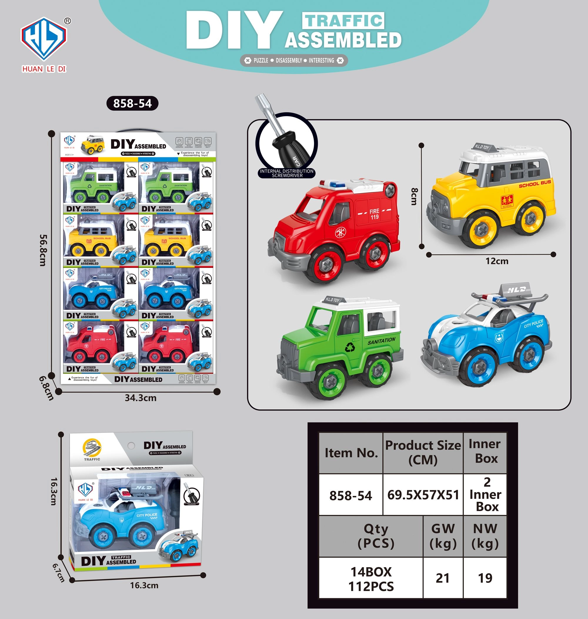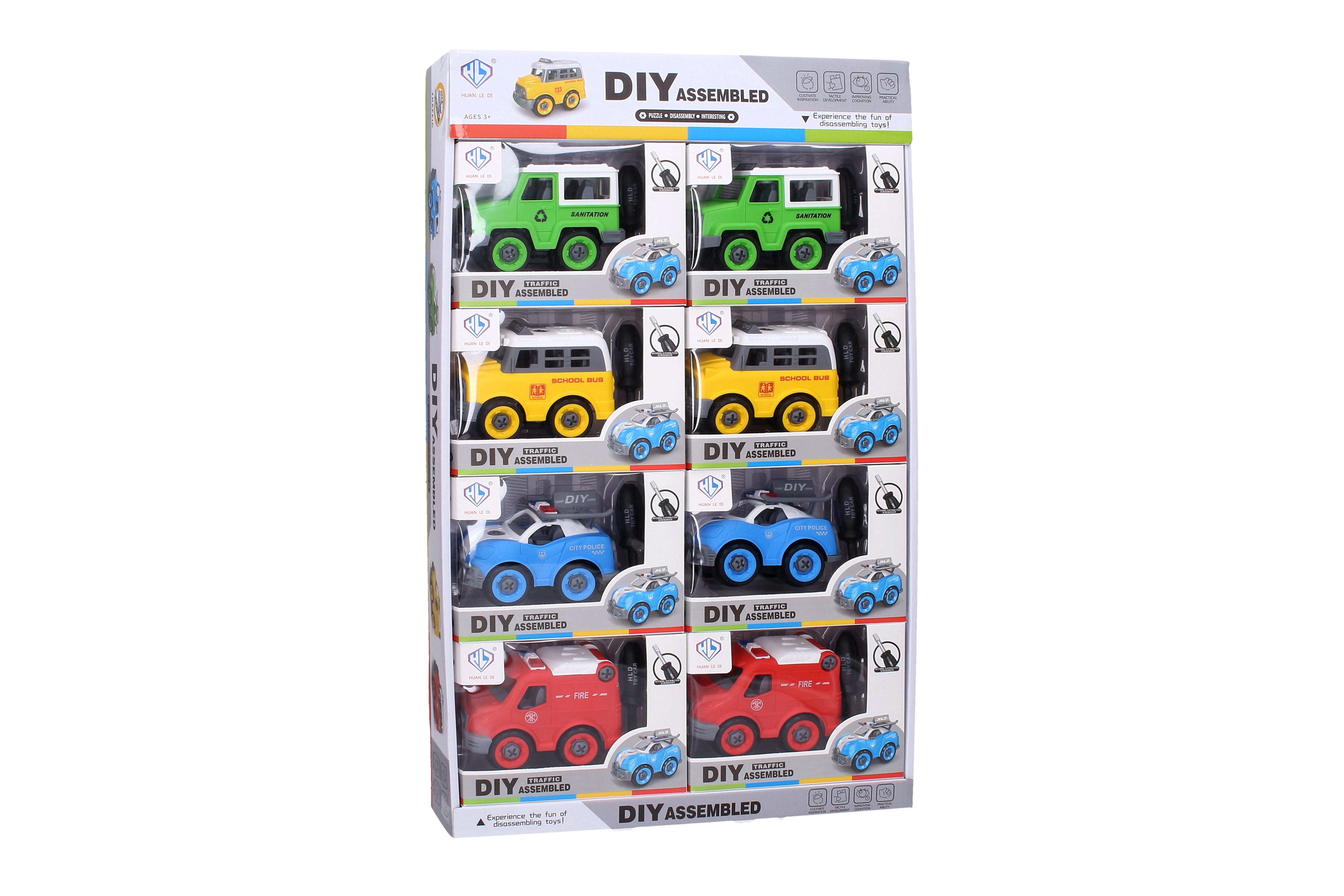 Izklaidējoša un izglītojoša skrūvējama mašīna bērniem, kas piedāvā iespēju attīstīt sīko motoriku. Pieejama 4 dažādās versijās – ugunsdzēsēji, policija, autobuss un uzkopšana.