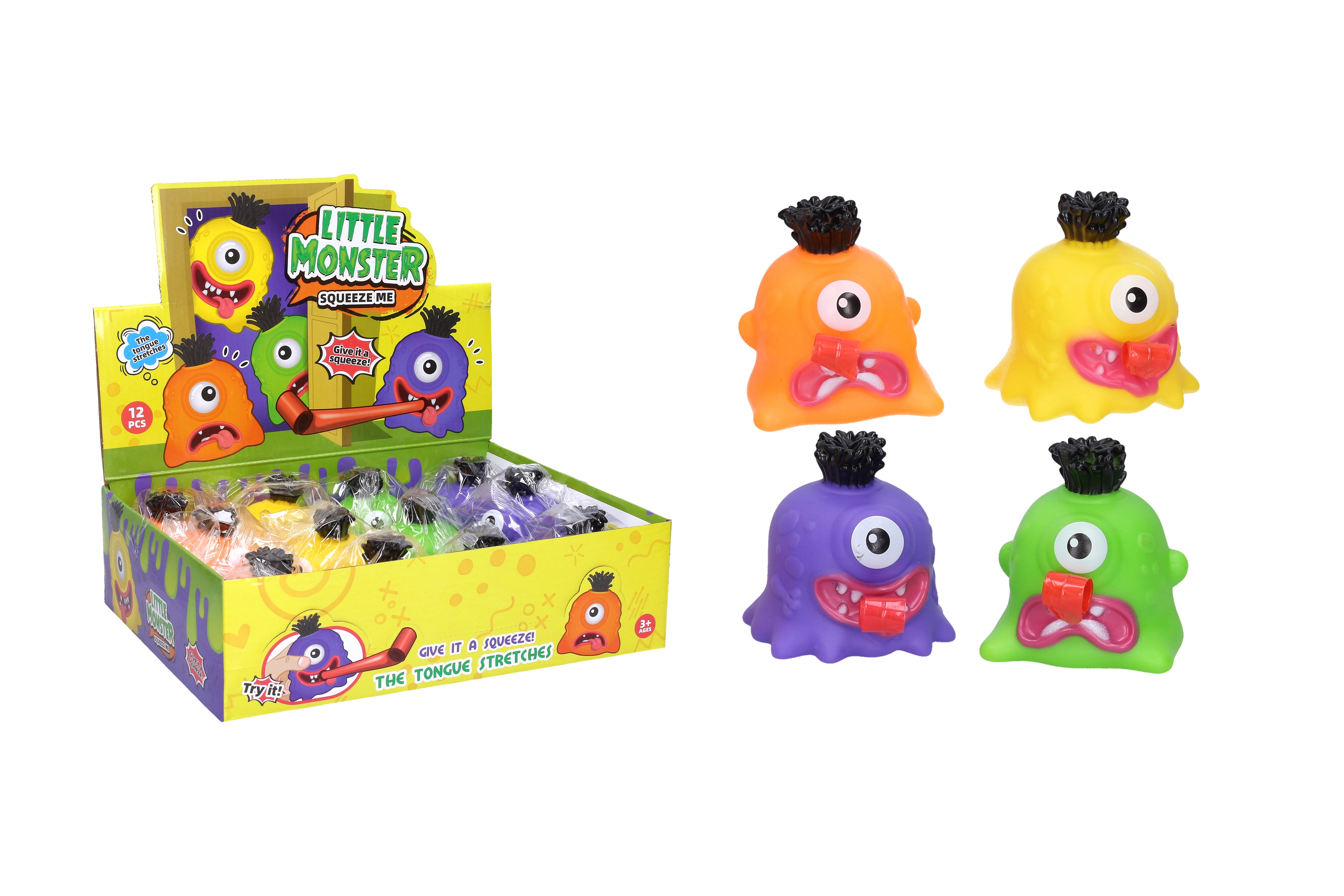 Šis oriģinālais briesmonis ir ideāla rotaļlieta bērniem, kuriem patīk izmēģināt ko jaunu. Ar izmēriem 8x7x8 cm tas lieliski der bērnu rokām, un pateicoties izšaujamajai mēlei kļūs par katras spēles zvaigzni. Lietotāji var savākt līdz pat četrām dažādām krāsām – zaļa, violeta, oranža un dzeltena, kas paplašina rotaļu iespējas un attīsta bērnu iztēli.