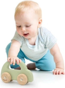 Šī minimālistiskā koka mašīnīte maigā zaļā tonī ir lieliska izvēle kā pirmā rotaļlieta kustību un koordinācijas attīstībai. Pateicoties ergonomiskajai formai, mazās rociņas to viegli satver un stumj pa grīdu, savukārt klusie riteņi nodrošina plūdenu un netraucētu kustību.