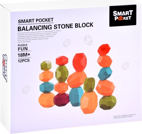 Pateicoties akmeņu plaknajām malām, bērni veido dažādas stāvēšanas un kārtošanas kombinācijas.