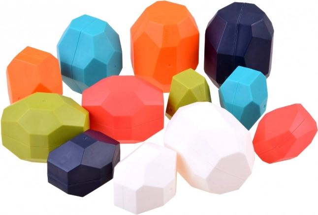 Šie celtniecības akmeņi daudzskaldņu ģeometriskās formās ļauj bērniem veidot unikālas konstrukcijas. Katru kustību nepieciešams rūpīgi plānot, jo viena kļūda var sagraut visu struktūru. Bagātīgā krāsu palete piešķir estētisku akcentu un piesaista uzmanību.