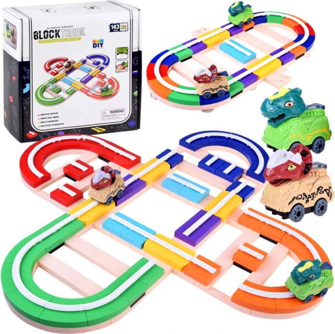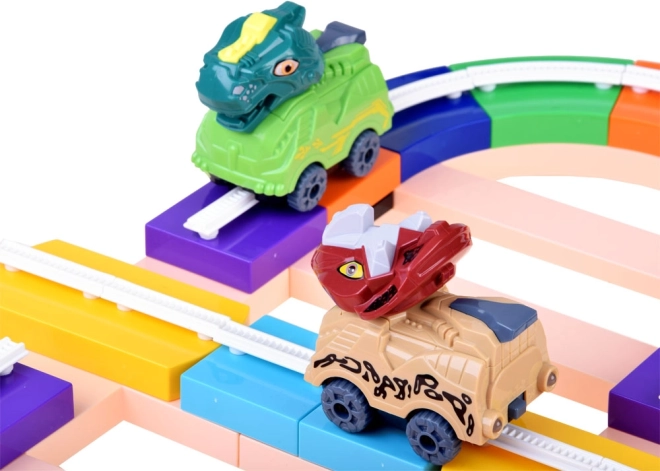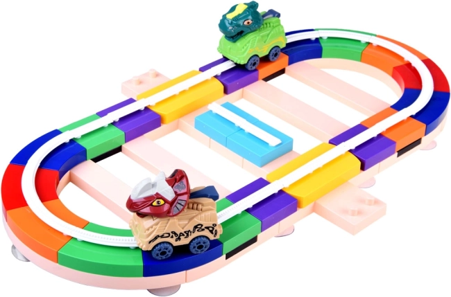 Dinozauru trases konstruktors piedāvā bērniem iespēju būvēt un pārveidot maršrutu pēc fantāzijas. Trases daļas vienkārši sasprādzē kopā, un tās var novadīt pa galdu un pa sienu – komplektā iekļautie piesūcekņi turas uz gludām virsmām, piemēram, stikla. Autiņi, pateicoties vadībai sliedēs, droši pārvietojas gan horizontāli, gan vertikāli, un, pareizi pagriežot blokus, var viegli mainīt braukšanas virzienu.