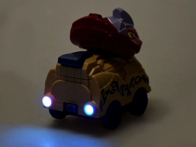 Divi tematiski autiņi ar dinozauru galvām spīd ar krāsainām gaismām un piedāvā divus ātrumus vēl lielākai jautrībai.