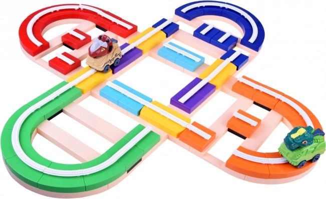 Maināma trase no 143 krāsainām detaļām ļauj veidot taisnes, līkumus un pat vertikālus posmus. Detaļas vienkārši sasprādzē un vari uzreiz sacensties.