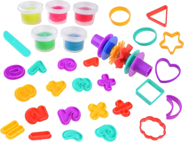 Bērnu radošais komplekts ar plastilīnu un veidnēm sniedz lielisku iespēju attīstīt radošumu un loģisko domāšanu. Pateicoties daudzveidīgajai krāsu paletei un dažādajām formām, bērni var iepazīt ciparu un formu pasauli, attīstīt motoriku un fantāziju.