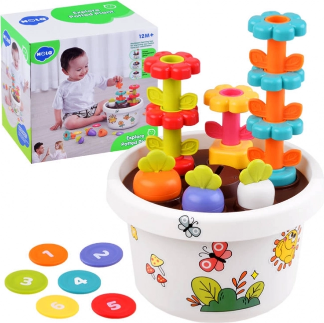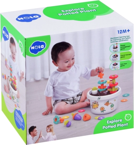 Hola izglītojošais puķu pods ir lieliski piemērots mazajiem dārzniekiem un veicina motorikas, krāsu un formu atpazīšanu jaunākajiem bērniem. Komplektā ietilpst 3 magnētiski burkāni, krāsaini ziedi un žetoni ar cipariem, kas veicina loģisko domāšanu un koordināciju. Viss izgatavots no augstas kvalitātes plastmasas, kas nodrošina drošību spēles laikā.