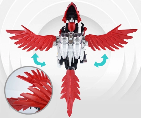 Pēc salikšanas raptors atdzīvojas: vēzē spārnus, atver žokļus un kustina asti. Mehānisms ar 1× AAA barošanu nodrošina dinamisku spēli un efektīgu modeļa prezentāciju.