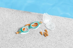 Peldēšanas brilles, kas paredzētas bērniem no 7 gadu vecuma, ir aprīkotas ar regulējamām siksnām, ļaujot tās precīzi pielāgot lietotāja galvai. Brillēm ir lēcas ar UV aizsardzību, kas pasargā bērna acis no kaitīgajiem saules stariem. Mīkstie, ērti okulāri nodrošina komfortu un neļauj ūdenim iekļūt.