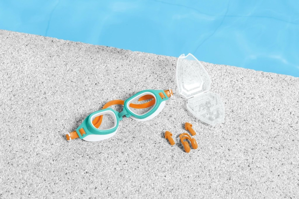 Komplektā ir deguna klipsis un mīksti ausu aizbāžņi, kas izstrādāti, lai novērstu ūdens iekļūšanu.