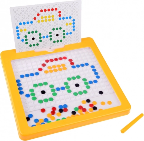 Darbs ar tapoņiem un magnētisko pildspalvu trenē satvērienu, koordināciju un pacietību. Ideāls palīglīdzeklis pirmsskolniekiem un jaunāko klašu bērniem.