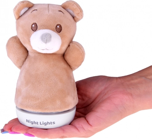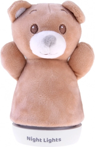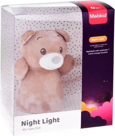 Vienkāršā, stabilā pamatne ļauj droši novietot uz naktsgaldiņa vai plaukta. Gaisma automātiski maina krāsas (piem., zila, zaļa, sarkana, dzeltena) un rada patīkamu atmosfēru mazajiem bērniem un zīdaiņiem. Plīša pārvalku var viegli noņemt un iztīrīt.