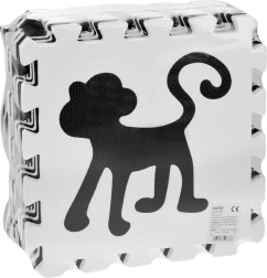 Šis kontrastainais putu paklājiņš ar dzīvnieku motīviem apvieno modernu izskatu un praktiskumu. 16 mīkstās daļas ar izmēru 30 × 30 × 1 cm viegli saliekamas līdz 120 × 120 cm, vai pielāgojamas pieejamajai telpai. Dažām flīzēm ir izņemami centrālie elementi, kas attīsta sīkmotoriku un māca formas un dzīvniekus.
