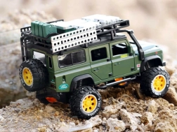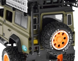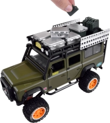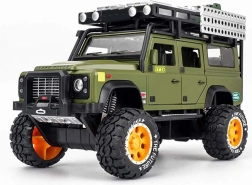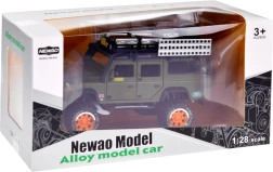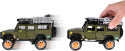 Atklājiet kvalitatīvi izstrādātu metāla apvidus auto ikvienam mazajam piedzīvojumu meklētājam. Auto ir stilīgā zaļā krāsā ar rūpīgi veidotām detaļām, piemēram, jumta bagāžnieku ar kannu un kastēm.
