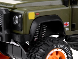 Metāla virsbūve zaļā krāsā ir papildināta ar gumijas protektora riepām un reālistiskiem gaismas efektiem.
