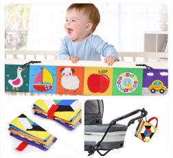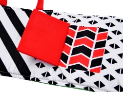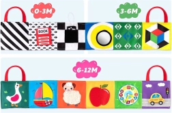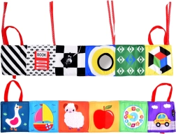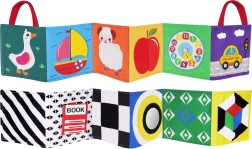 Šī saliekamā maņu grāmatiņa ir izstrādāta, lai atbalstītu bērna visu maņu attīstību jau no pirmajiem dzīves mēnešiem. Tā satur dažādas faktūras, čaukstošus elementus, spogulīti un garas tekstila lentes, kas stimulē tausti, redzi un dzirdi. Salocītā veidā tā ir kompakta un viegli pārnēsājama, tāpēc ir ideāli piemērota ceļošanai. Divas iešūtas cilpiņas atvieglo bērnam satveršanu un nešanu.