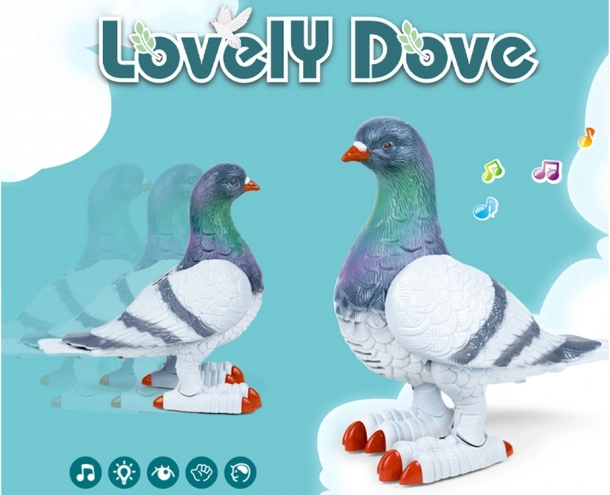 Interaktīvais balodis spēj lēnām virzīties uz priekšu, plivināt spārnus un mirgot ar acīm, ko papildina jautra melodija.