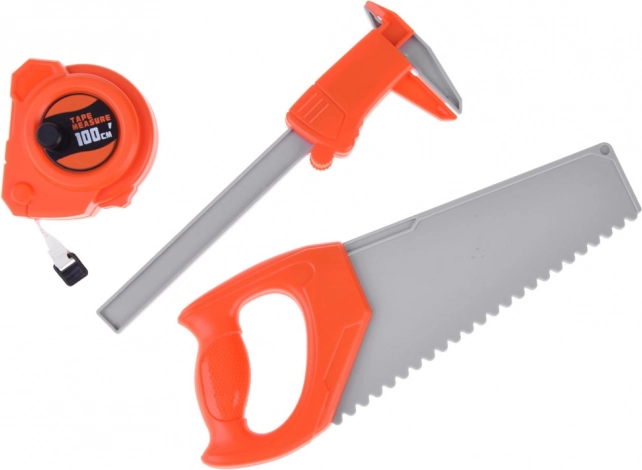 Komplektā ir instrumenti, kas izskatās kā īsti, bet ir droši bērniem. Tas ļauj bērniem spēlēties remontdarbus un attīstīt tehnisko domāšanu.