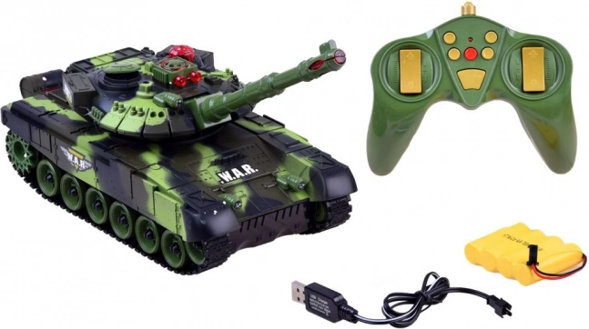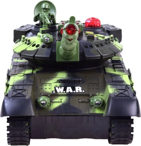 Izbaudi dinamiskas cīņas ar RC tanku meža kamuflāžā. Modelis spēj braukt uz priekšu/atpakaļ, pagriezties uz vietas un tam ir rotējošs tornis par 180° katrā pusē (kopā 360° pārklājums). Pēc trāpījuma iedegas/dziest kaujas stāvokļa indikatori, un tanks simulē reālistisku atdevi, kas pastiprina īsta kaujas lauka atmosfēru.