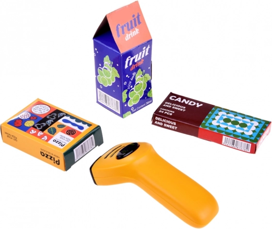 Bērni var skenēt preces, ievadīt cenas un maksāt ar karti vai “skaidrā naudā”. Skaņas kases aparāts un gaismas skeneris veicina reālistisku spēli un pamata matemātikas apguvi.