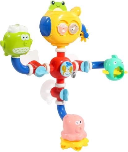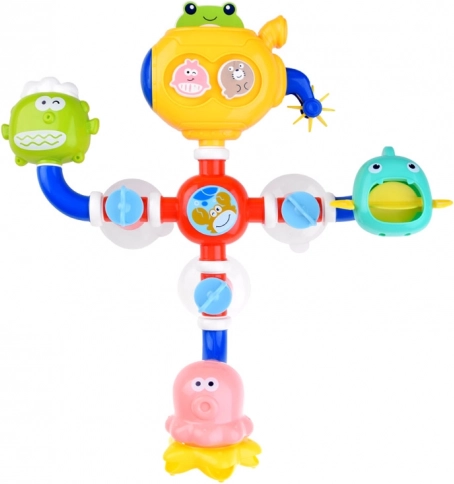 Izklaides vannas rotaļlieta ir izstrādāta, lai veicinātu bērnu maņu attīstību. Košais dizains un interaktīvie elementi, piemēram, ūdens dzirnavas un karuselis, rosina bērnu iztēli un padara mazgāšanos aizraujošāku. Pateicoties piesūcekņiem, to var viegli piestiprināt pie vannas sienas vai flīzēm, nodrošinot stabilitāti spēles laikā.