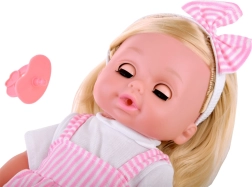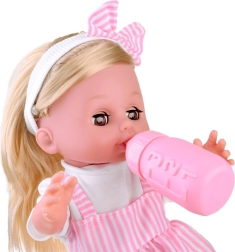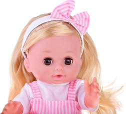 Lelle ir tērpta skaistās baltās un rozā kleitās ar ziedu rakstu un baltā krekliņā. Tā ir aprīkota ar urīnēšanas funkciju, kas bērniem ļauj apgūt rūpes par mazuli. Reālistisku sajūtu sniedz galva, rokas un kājas no cietas gumijas.