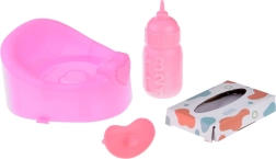 Komplektā ietilpst knupītis un citi piederumi, kas palīdz bērniem attīstīt aprūpes prasmes. Rotaļlieta veicina empātiju un atbildību, mācot rotaļīgā veidā.