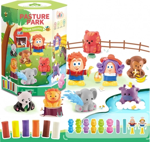 Šis radošais komplekts ir lieliski piemērots sava mini ZOO izveidei. Bērni var ielikt plastilīnu izvēlētajā dzīvnieka formas veidnē un, to aizverot, izveidot telpisku figūriņu. Spēlēšanās ar plastilīnu veicina koncentrēšanos un krāsu un formu apguvi.