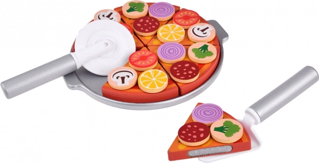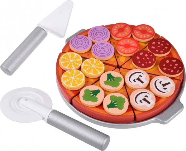 Šis koka picas komplekts bērniem sniedz iespēju kļūt par šefpavāru savā picērijā. Ar 27 koka detaļām, tostarp dažādiem krāsainiem piederumiem, bērni var veidot un pasniegt picu pēc savas fantāzijas. Picas gabaliņi savienoti ar līplenti, kas ļauj tos viegli sagriezt un atkal salikt.