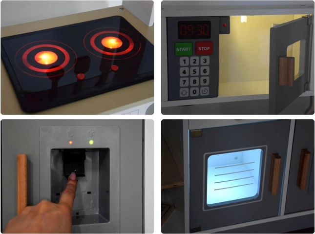 Vārīšanas skaņas efekti, plīts virsmas apgaismojums un funkcionāls ūdens dozators nodrošina maksimālu iesaisti spēlē.