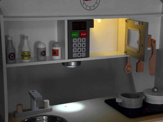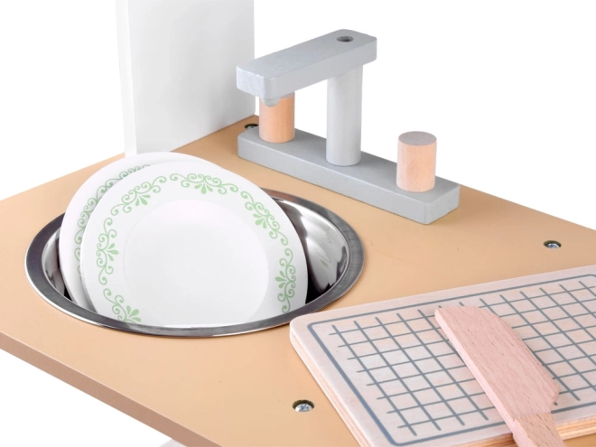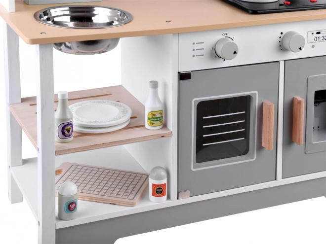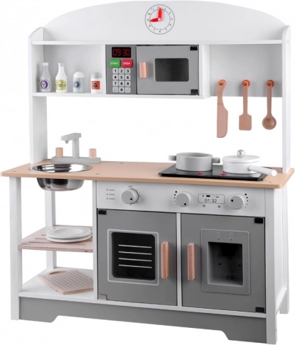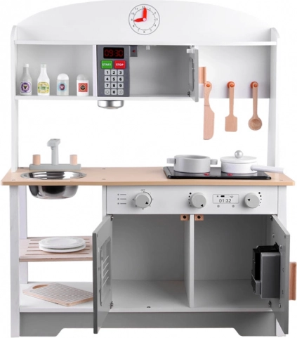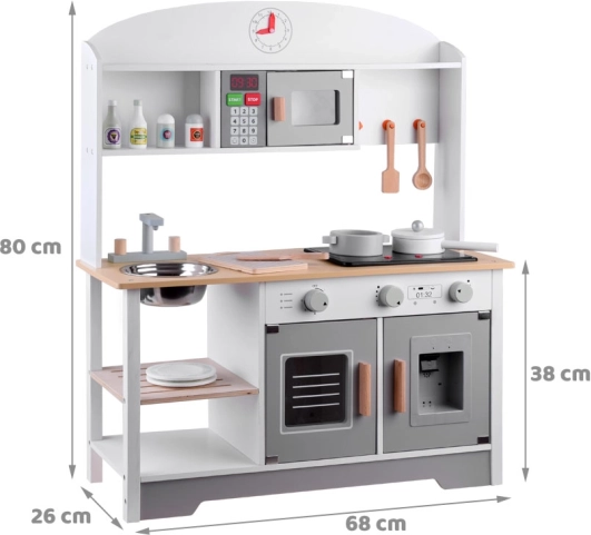 Šī bērnu virtuvīte ir estētiski izstrādāta un nodrošina ne tikai lielisku izklaidi, bet arī veicina bērna attīstību. Bērniem patīk atdarināt pieaugušos, un šī virtuvīte ļauj spēlēties ēst gatavošanā, uzkopšanā un citās ar mājsaimniecības vadību saistītās darbībās.
