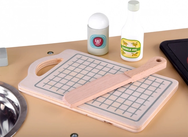 Koka interaktīvā virtuvīte ir ideāls līdzeklis jūsu bērnu radošuma un smalkās motorikas attīstīšanai. Šis bērnu komplekts atdarina ikdienas darbības, veicina iztēles spēles un ir pilnībā izgatavots no dabīgas koksnes, nodrošinot drošību un izturību.