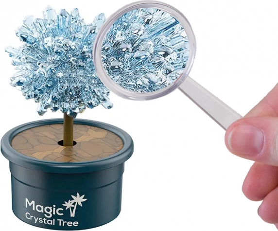 Šis izglītojošais STEM eksperiments ļauj bērniem vērot īstu kristalizācijas procesu – no šķīduma sagatavošanas līdz brīnišķīgas kristālu vainaga izaugšanai. Dažu dienu laikā izveidosies oriģināls kristālu kociņš, kas kļūs par košu istabas dekoru un atgādinās par pirmo zinātnisko eksperimentu.