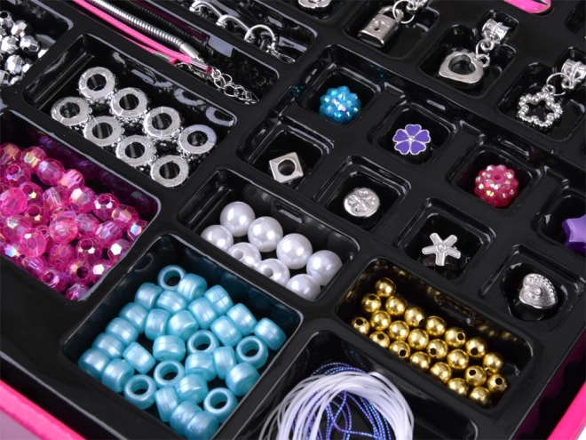 Komplektā ir dažādas pērlītes, piekariņi un ķēdītes, ko var izmantot jūsu modes aksesuāru personalizēšanai, nodrošinot, ka katrs izstrādājums ir unikāls.