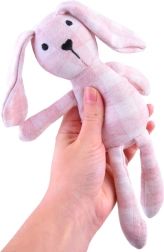 Rotaļīgais trusītis ar izšūtām detaļām šūts no tās pašas auduma kā lelles šortiņi – lieliski saskaņots un ideāls samīļošanai.