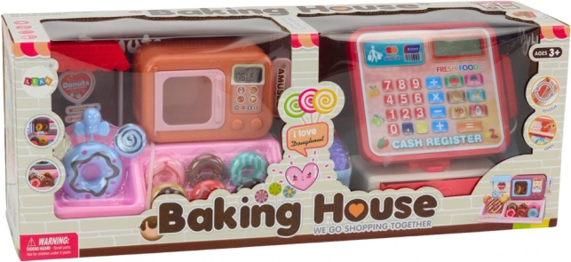 Komplekts veicina radošumu un sīko motoriku, pateicoties reālistiskam tirdzniecības letes komplektam ar mikroviļņu krāsni un virtuālajiem donutu piedāvājumiem.
