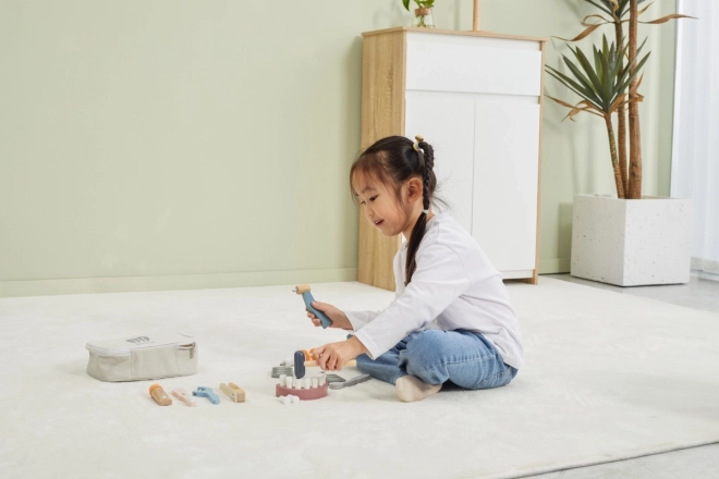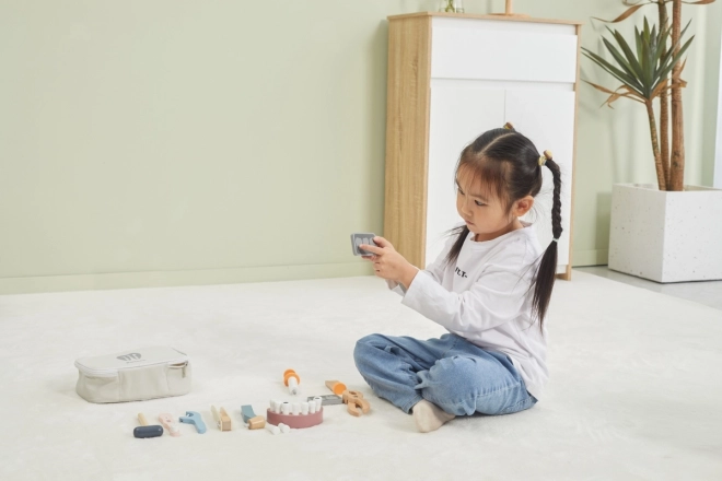 Viss ir ievietots izturīgā pārnēsājamā somā, tāpēc komplektu ir viegli pārvadāt un novietot. Kvalitatīvs lakots koks un netoksiskas krāsas nodrošina drošu un ilgstošu izklaidi. Ideāla dāvana topošajiem zobārstiem un zobārstēm.