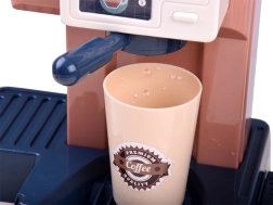 Pilns bērnu kafejnīcas komplekts ar funkcionālu ūdens caurplūdes kafijas aparātu, kasi un konditorejas vitrīnu nodrošina stundām ilgu radošu lomu spēli. Komplektā ir 41 detaļa, tostarp kafijas krūzītes, saldumi, maksājumu karte un banknotes. Kafijas aparāts piedāvā gaismas un skaņas efektus un simulē grauzdēšanu/malšanu un kafijas pagatavošanu, kases aparāts pīkst, maksājot ar karti. Ideāli piemērots iztēles, komunikācijas un sīkās motorikas attīstīšanai.