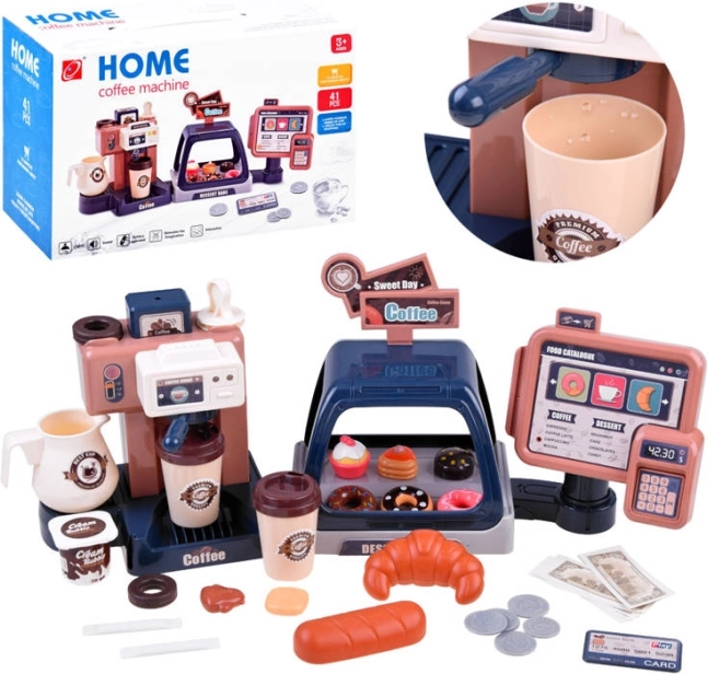 Šis realistiskais komplekts ļauj bērniem atvērt savu kafejnīcu: pagatavot “espresso”, izkārtot našķus vitrīnā un iegrāmatot pasūtījumu kasē. Kafijas aparāts ar ūdens caurplūdi pēc ūdens ieliešanas no augšas un portafiltra ievietošanas “uzvāra” kafiju ar gaismas indikāciju (sarkana pagatavošanas laikā, zaļa pēc pabeigšanas) un malšanas un lejšanas skaņām. Kase ir ar rotējošu paneli, pīkst, maksājot ar karti, un atskaņo atvēršanas skaņu.