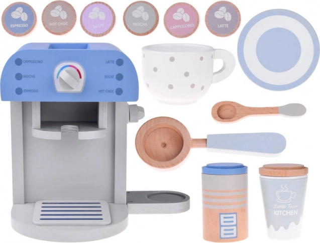 Koka kafijas automāts bērniem elegantā zilā krāsā ir perfekta rotaļlieta jebkurai bērnu virtuvei. Šis stilīgais un kvalitatīvi izgatavotais komplekts ietver kafijas automātu un piederumus, kas nodrošina jautru un izglītojošu spēli.