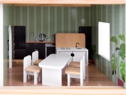 Mājiņa ir rūpīgi veidota ar reālistisku grafiku un koka mēbelēm, kas piešķir īstas dzīves sajūtu.