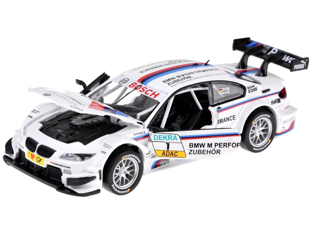 Šis precīzi izstrādātais sacīkšu auto ar licencētu BMW M Performance izskatu piedāvā reālistiskas detaļas, gumijas riepas un plastmasas šasiju izturīgai spēlēšanai. Atverot durvis, dzirdama atslēgšanas skaņa, bet, piespiežot virsbūvi, tiek aktivizēts motora starts un darbība. Spīd gan priekšējie, gan aizmugurējie lukturi, kā arī apgaismota instrumentu panelis, tāpēc katrs brauciens izskatās kā uz īstas DTM trases.
