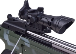 Integrētais lāzera tēmētājs palīdz bērniem labāk notēmēt mērķi un palielina gan izklaidi, gan trāpījumu sekmes.