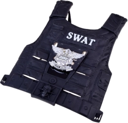 Viegla plastmasas veste ar košu SWAT uzrakstu piešķir spēlei īstu policijas izskatu. Viegli uzvilkt, pateicoties elastīgai aizdarei aizmugurē.