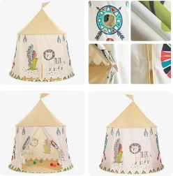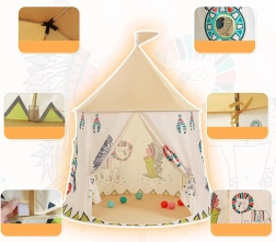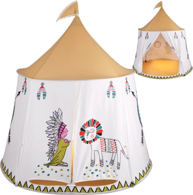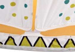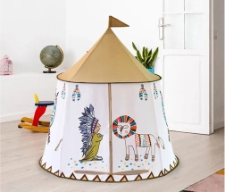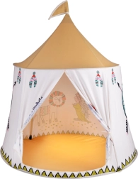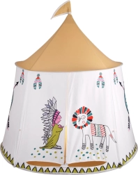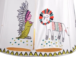 Šis apaļais tipiju ar rotaļīgiem indiāņu apdrukas motīviem pārvērtīs istabu burvīgā stūrītī lasīšanai, lomspēlēm un atpūtai. Vieglā konstrukcija nodrošina ērtu montāžu/demontāžu un pārvietošanu pēc vajadzības, savukārt elpojošs audums sniedz patīkamu klimatu rotaļām.