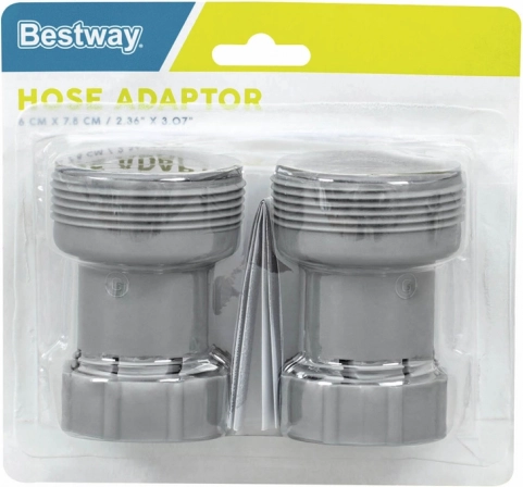 Adapteri baseina šļūtenei ar diametru 38 mm, kas savieno vārstus Bestway filtru sūkņos ar diametru 32 mm. Izgatavoti no ļoti izturīga un korozijizturīga materiāla.